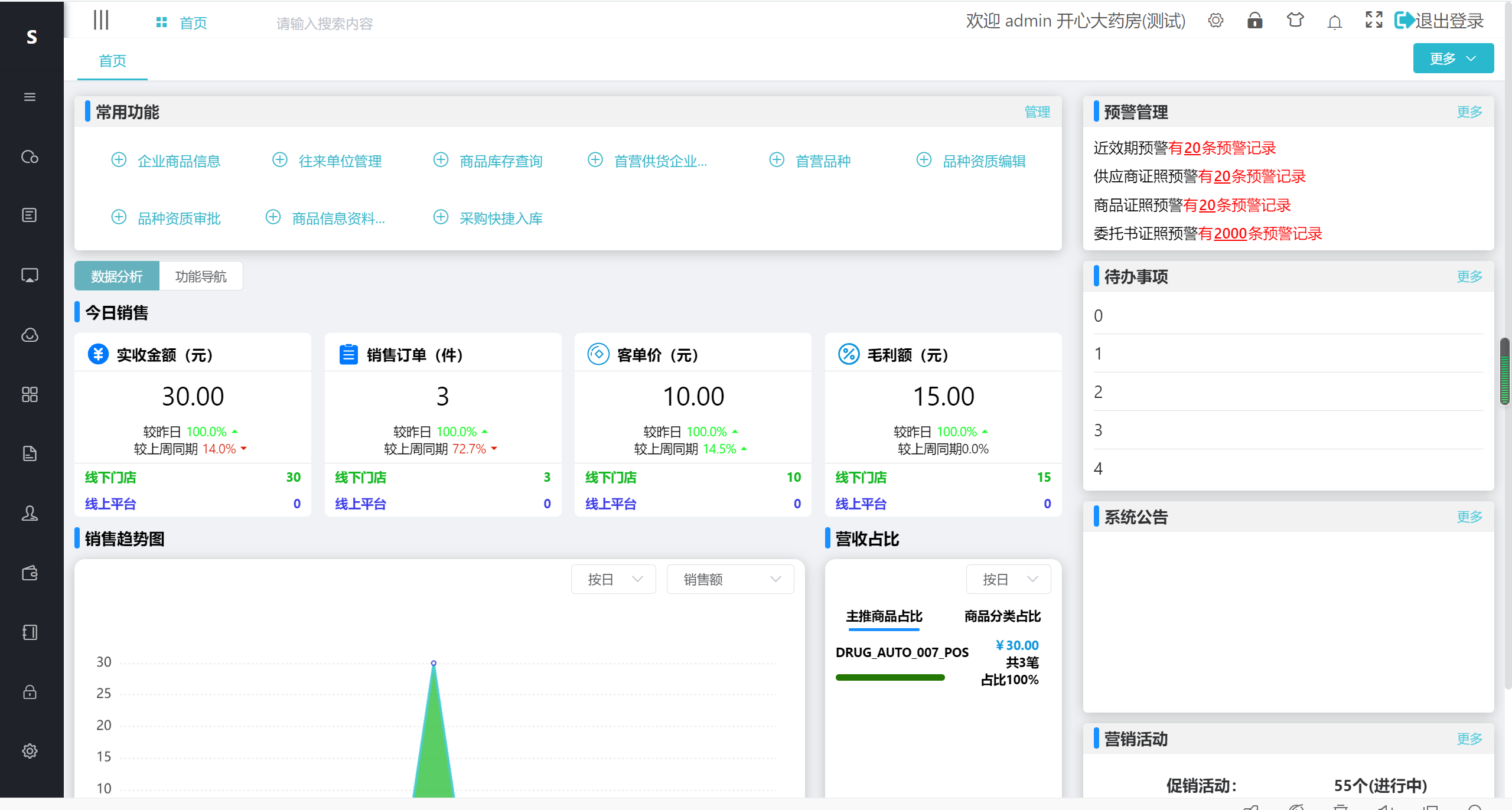 进销存系统 是为药品零售店提供的集采购、销售、库存管理为一体的多租户的saas平台,集中数据的管理 方便客户分析数据。